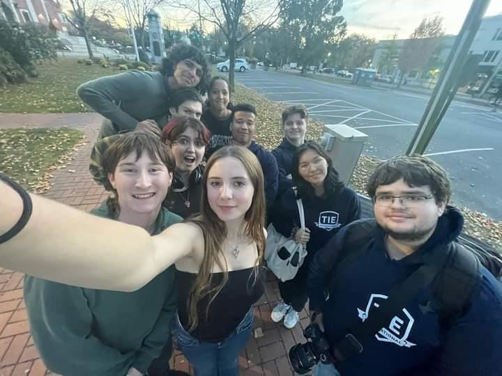 Afterward, we received a free lunch pass, but the food wasn’t really tasty. We met some members of the German Club, who joined us at the lunch table in the library. The library was quite impressive, especially with its range of broadcasting equipment like cameras and lights. Before our afternoon presentation, they also showed us more of the high school facilities, including the auditorium with its stage for theater performances.